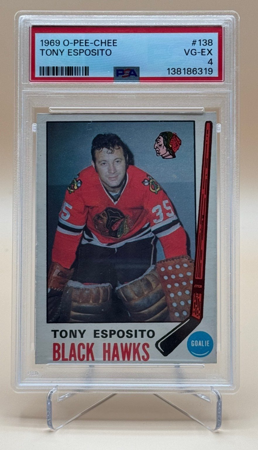 Tony Esposito 1969–70 O-Pee-Chee #138 Rookie Card – PSA 4 (VG-EX)
